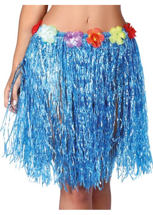 Falda Hawaiana con Flores de 55 cm Azul - Faldas y Pantalones